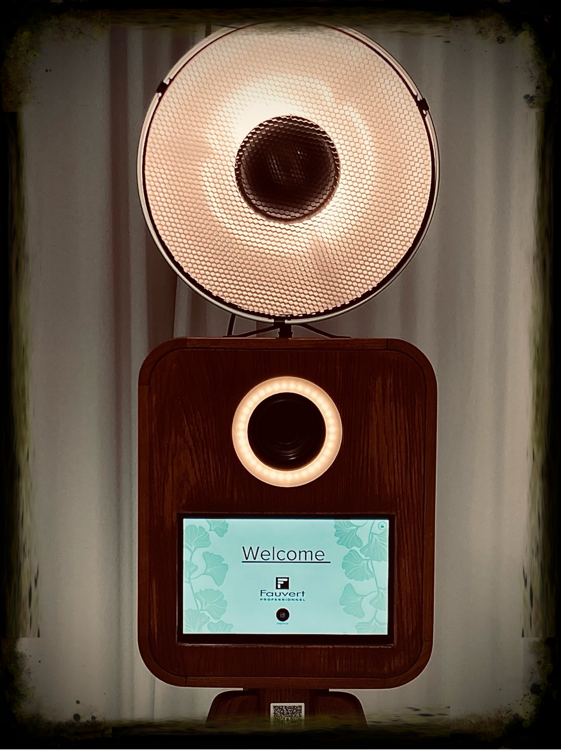 Photobooths en bois, finitions élégantes, style rétro chic adapté aux événements haut de gamme.